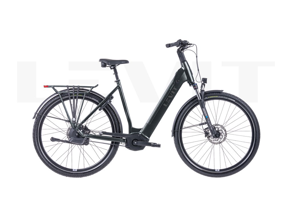 Experience a comfortable and stylish ride through the city with an electric bike that combines modern technology with a minimalist design. The Motinova Volans Plus motor delivers smooth and powerful performance. The smart Enviolo TR AutomatiQ automatic shifting system ensures smooth gear changes without manual control. Thanks to the maintenance-free Gates belt drive, you can enjoy a quiet and hassle-free ride. Practical features include a sturdy rear rack with a load capacity of up to 27 kg and the MIK HD mounting system, perfect for carrying groceries. The aluminum fenders with a laser-etched LEVIT logo give the bike a sleek look. Safety and comfort are enhanced by Schwalbe tires with a reflective stripe and puncture protection. A stylish detail in the form of the illuminated LEVIT logo emphasizes the modern character of the bike.