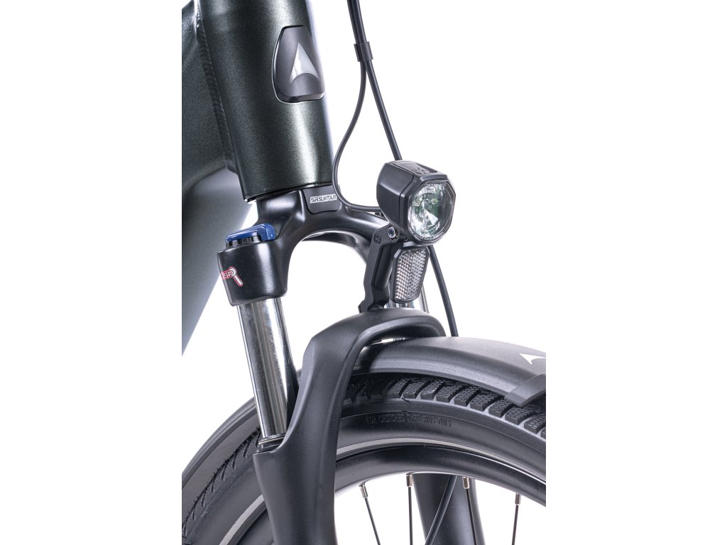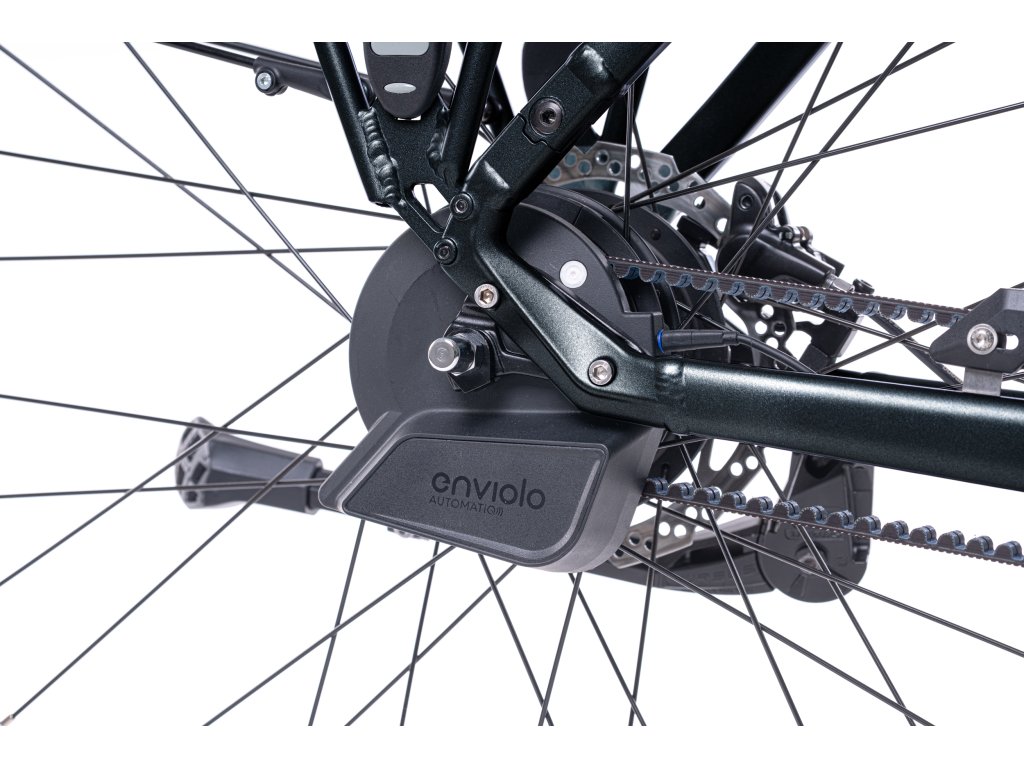 Experience a comfortable and stylish ride through the city with an electric bike that combines modern technology with a minimalist design. The Motinova Volans Plus motor provides smooth and powerful drive. The smart Enviolo TR AutomatiQ automatic shifting system ensures smooth gear changes without manual control. Thanks to the maintenance-free Gates belt drive, you can enjoy a quiet and worry-free ride. Practical features include a sturdy rear rack with a load capacity of up to 27 kg and the MIK HD mounting system, perfect for carrying groceries. The aluminum fenders with a laser-etched LEVIT logo give the bike a sleek look. Safety and comfort are enhanced by Schwalbe tires with a reflective stripe and puncture protection. A stylish detail in the form of the illuminated LEVIT logo highlights the bike's modern character.